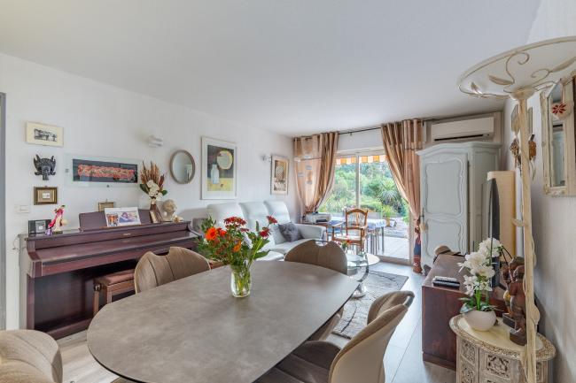 L’appartement est un deux pièces de 46,10 m² Carrez exposé sud-est offrant 29 m² de terrasse et 85 m² de jardin privatif, situé au rez-de-chaussée, avec accès direct à la piscine de la résidence au fond du jardin.