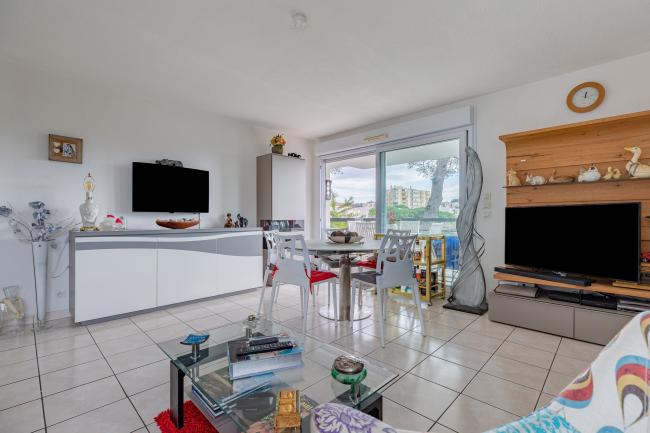 Le sol de l’appartement est entièrement carrelé. L’appartement est très bien agencé et il donne sur une terrasse de 10 m². Il est entièrement climatisé. Les fenêtres sont en double vitrage avec volets électriques.