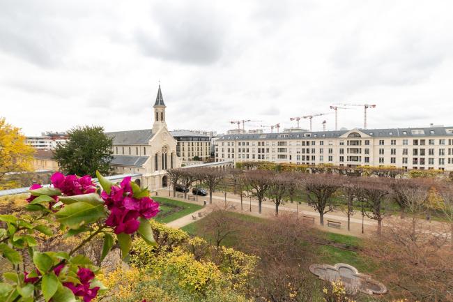 - Étage élevé, vue sur un parc