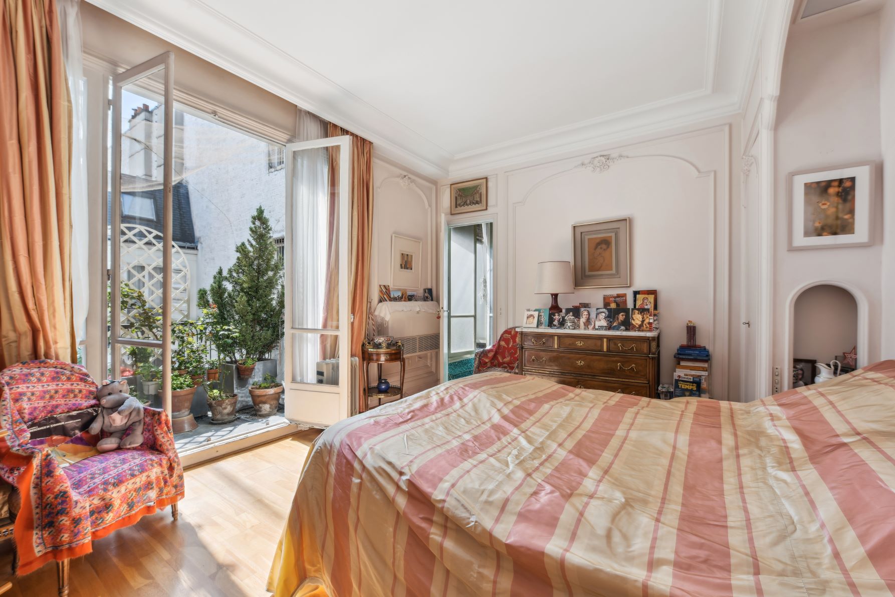 Il résulte de la réunion de deux appartements et offre une galerie d'entrée, un double salon et une salle à manger donnant sur l’avenue Victor Hugor, un deuxième salon bibliothèque, une cuisine, une chambre exposée sud avec salle de bain donnant sur un balcon, deux autres chambres donnant sur la cour intérieure, une salle de douche et deux WC.