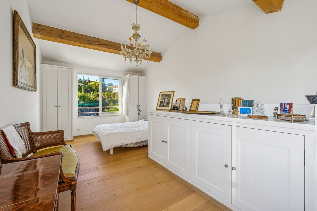 À l’étage, une chambre à triple exposition bénéficie d’une vue mer côté Nord.