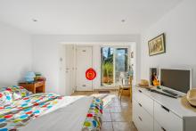 En rez-de-jardin, une chambre indépendante avec salle d’eau et WC est accessible aussi bien par l’intérieur que par l’extérieur.