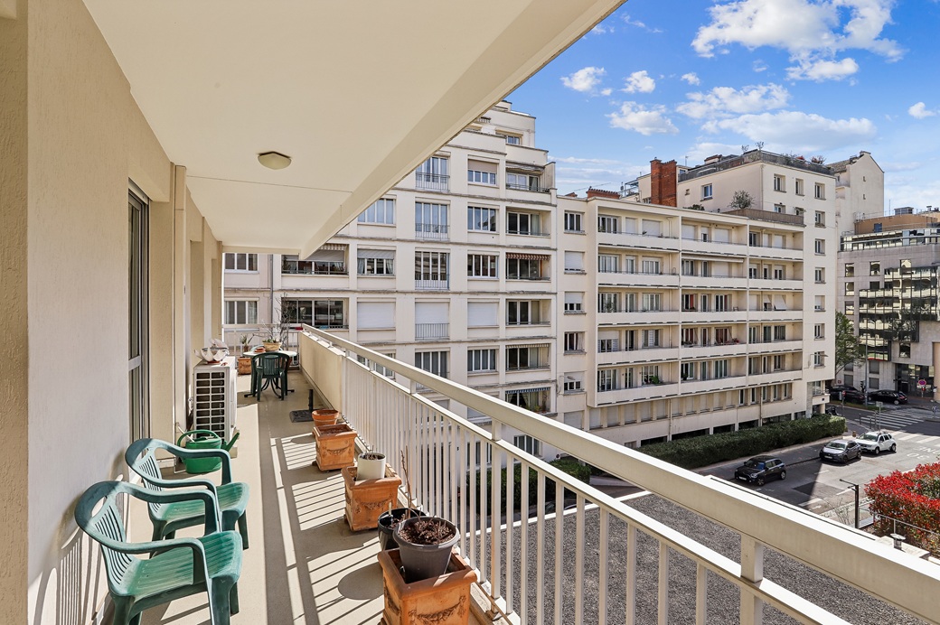 - Un grand balcon filant offrant une vue dégagée