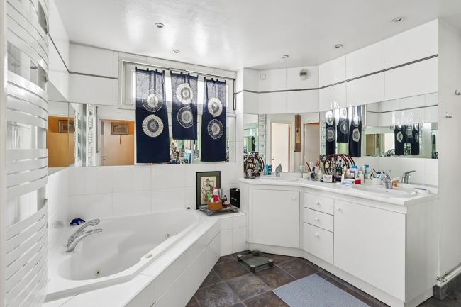 L'espace nuit comprend une grande chambre de maître de 25 m² (divisible en deux chambres), et deux chambres de 11 et 15m² (celle dans le prolongement du salon étant actuellement aménagée en bibliothèque). Le tout est complété par une salle de bains avec baignoire, une salle de douche et deux WC séparés.