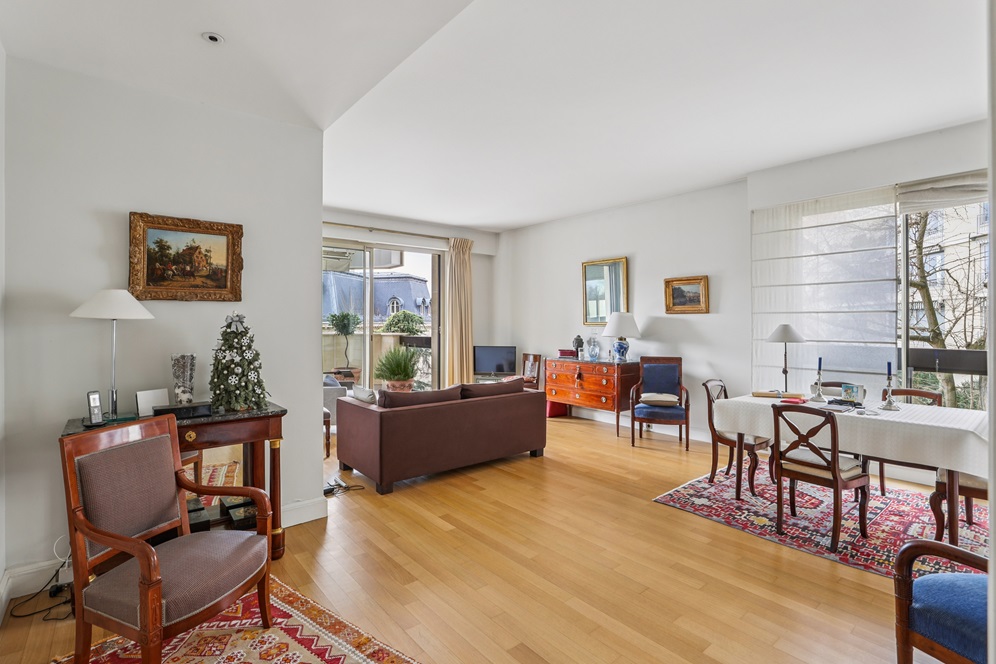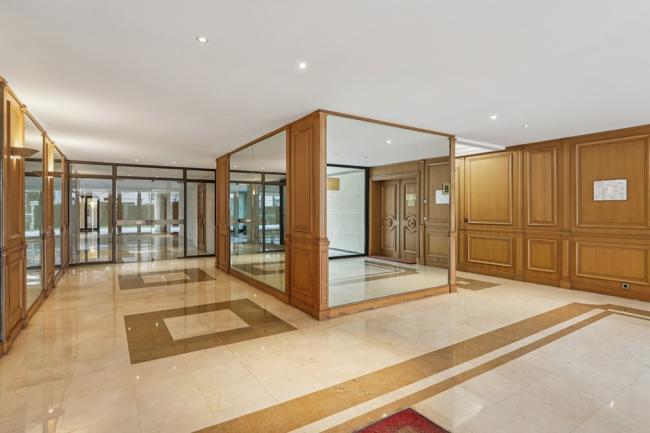 Cet immeuble de cinq étages a été construit en 1995 et est doté d’une façade en pierre de taille. Il bénéficie d’un haut niveau de sécurité avec un accès sécurisé (portail, porte et ascenseurs), un gardien et des rondes nocturnes. Les parties communes sont en excellent état.