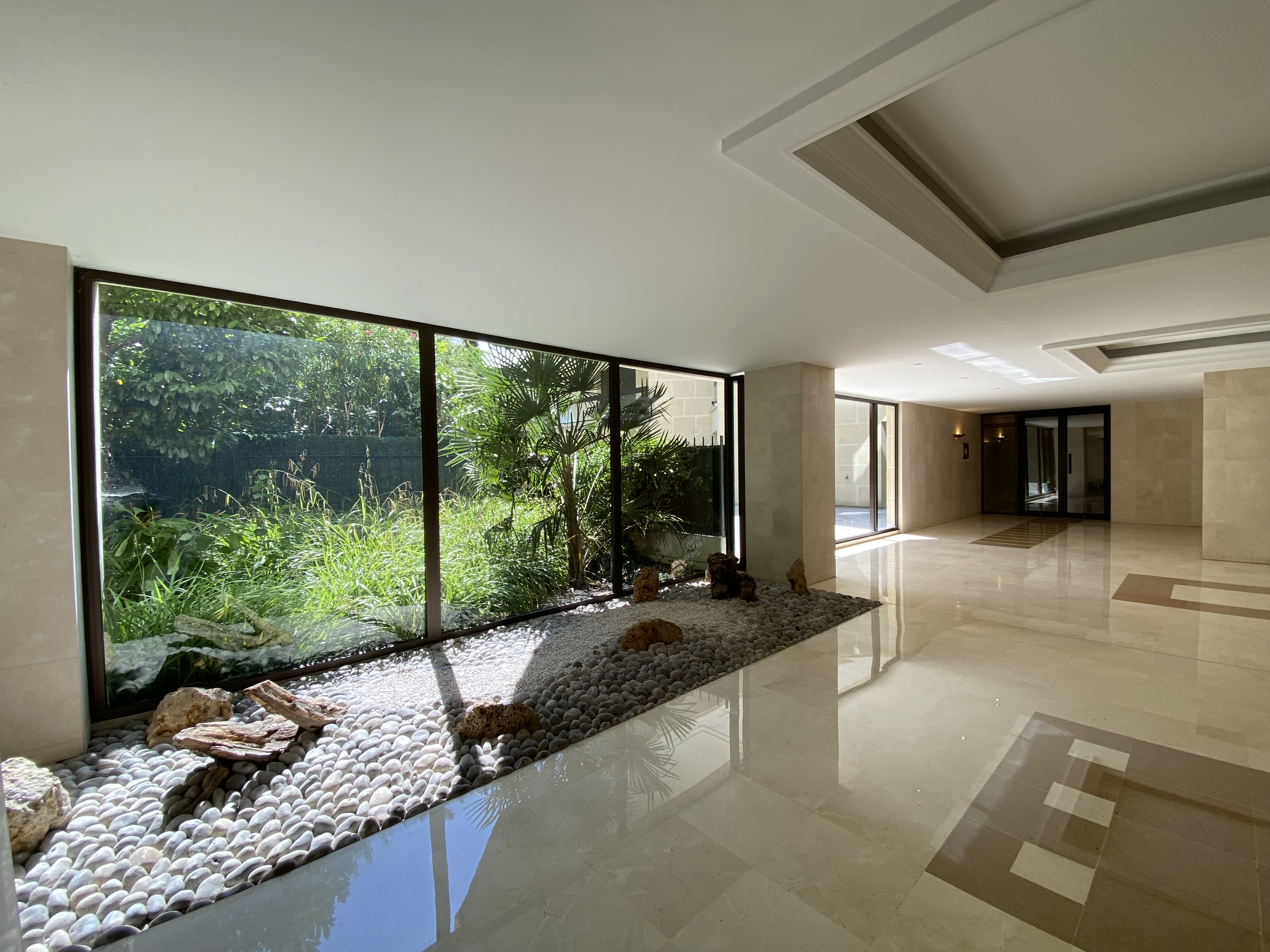 Cet immeuble de cinq étages a été construit en 1995 et est doté d’une façade en pierre de taille. Il bénéficie d’un haut niveau de sécurité avec un accès sécurisé (portail, porte et ascenseurs), un gardien et des rondes nocturnes. Les parties communes sont en excellent état.