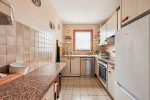 L’entrée dessert un double salon/salle à manger lumineux avec bow-window offrant une vue dégagée, ainsi qu’une cuisine en longueur attenante.