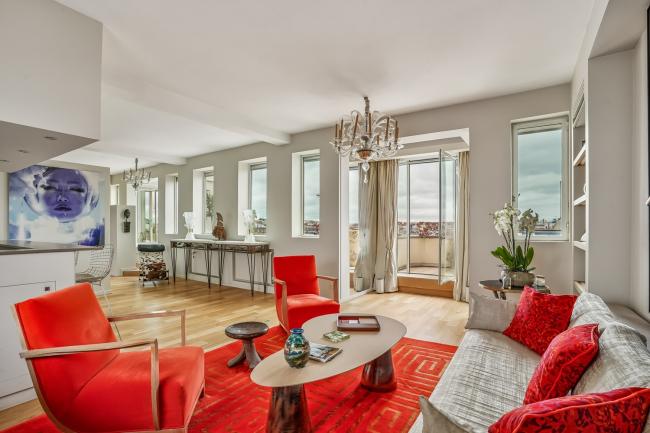 Ce duplex d’exception est situé au quatrième et cinquième étage avec ascenseur privatif. Il offre une surface de 83,7 m² Carrez et 92,6 m² au sol, soit une surface pondérée de 88 m².