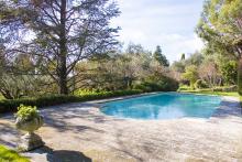 Elle a été construite en 1840 avec des matériaux de qualité : murs avec enduit provençal, toiture tuiles en rang de génoises, au sol vieux feuillets anciens patinés de type provençal. Elle s‘étend sur un terrain de 11 380 m2 avec une possibilité de construction additionnelle : un permis de construire a été déposé pour une autre maison d’une surface de 380 m² avec piscine. Une grange d’une surface de 35 m² ainsi qu’un Mazet d’une surface d’environ 110 m² viennent compléter l’ensemble.